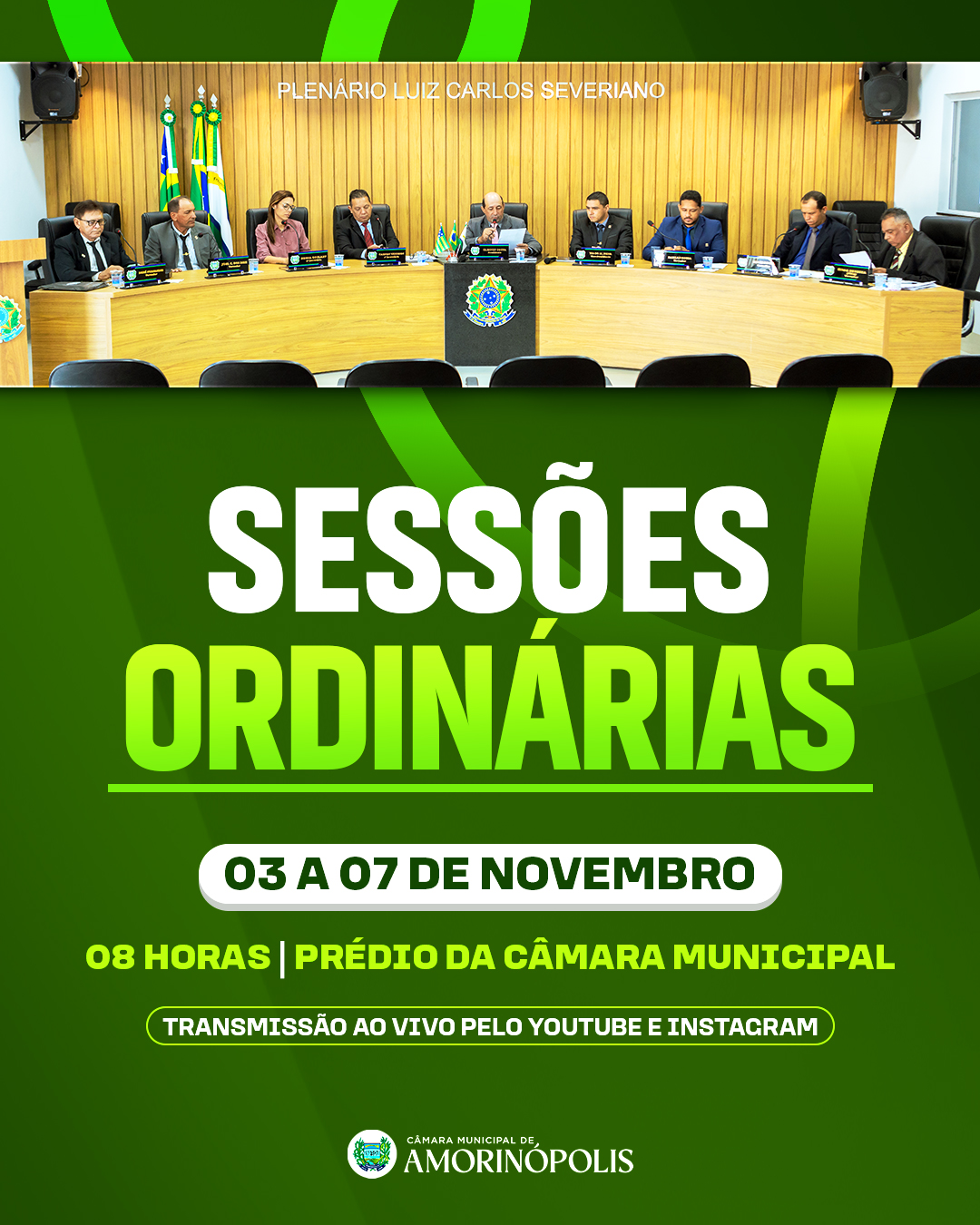 - Ao vivo: YouTube e Instagram — @camaraamorinopolis.