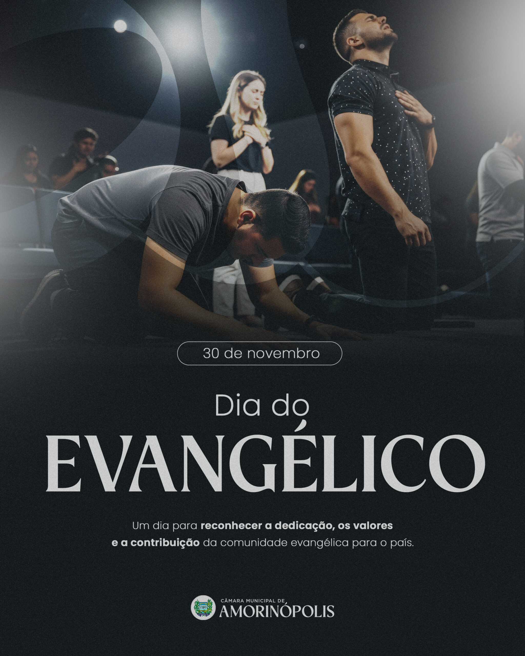 A Câmara Municipal de Amorinópolis reconhece e homenageia, neste Dia do Evangélico, todos os homens e mulheres que expressam sua fé por meio da adoração, do serviço comunitário e da vivência diária do Evangelho.